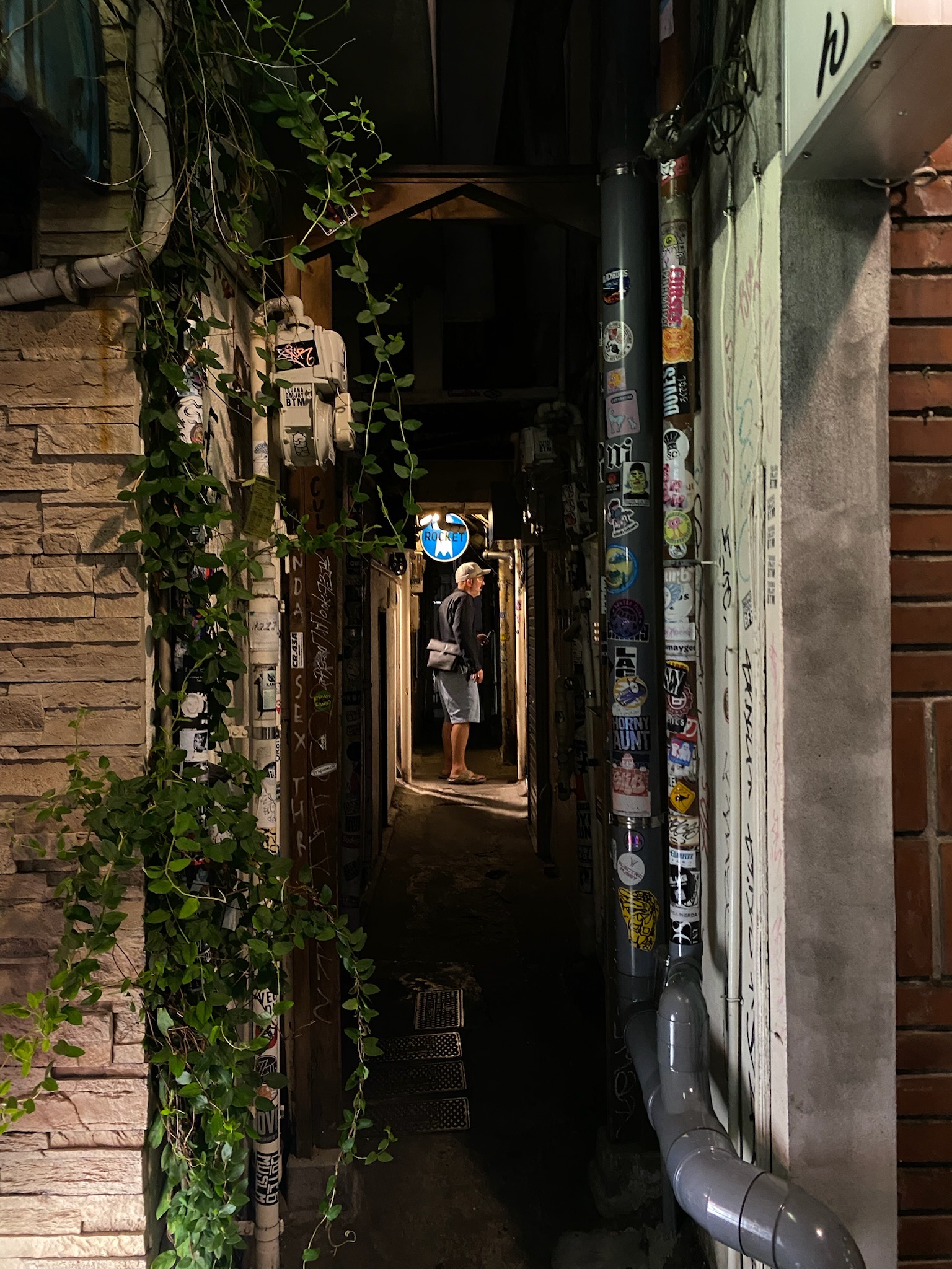 Hinter den grellen Fassaden wartet Kabukichō, das berühmte Vergnügungsviertel. Hier trifft Glitzer auf Schatten: Karaoke-Bars und schrille Shows. Nur ein paar Schritte weiter liegt Golden Gai – das komplette Gegenteil, und doch genauso faszinierend. Winzige Bars drängen sich in engen Gassen, jede mit kaum Platz für eine Handvoll Gäste. Über den Türen hängen handgeschriebene Schilder, aus den Spalten dringt Zigarettenrauch und Jazzmusik. Es ist roh, ehrlich und wunderbar schräg – ein Stück altes Tokio, das man hier noch atmen kann.