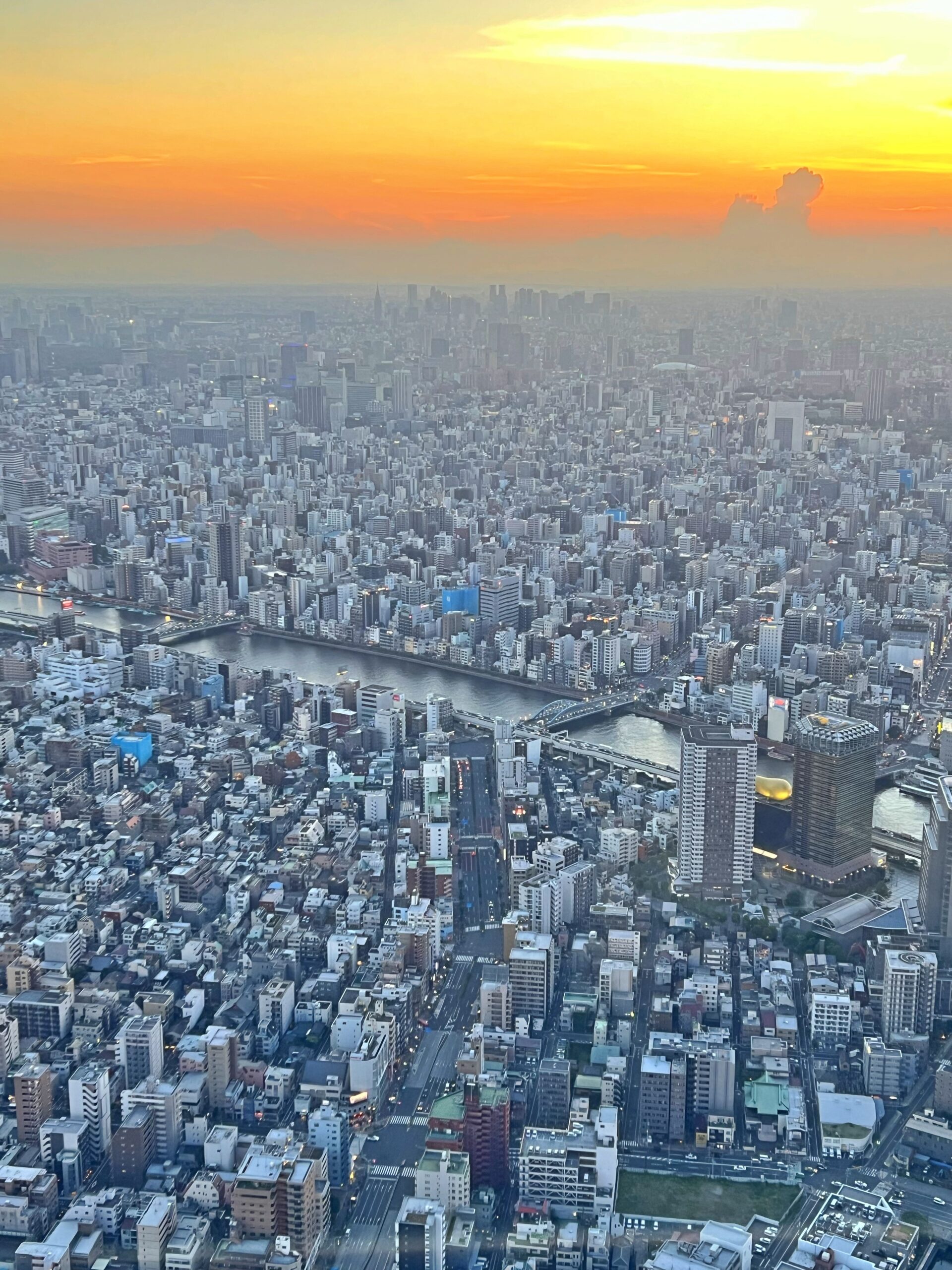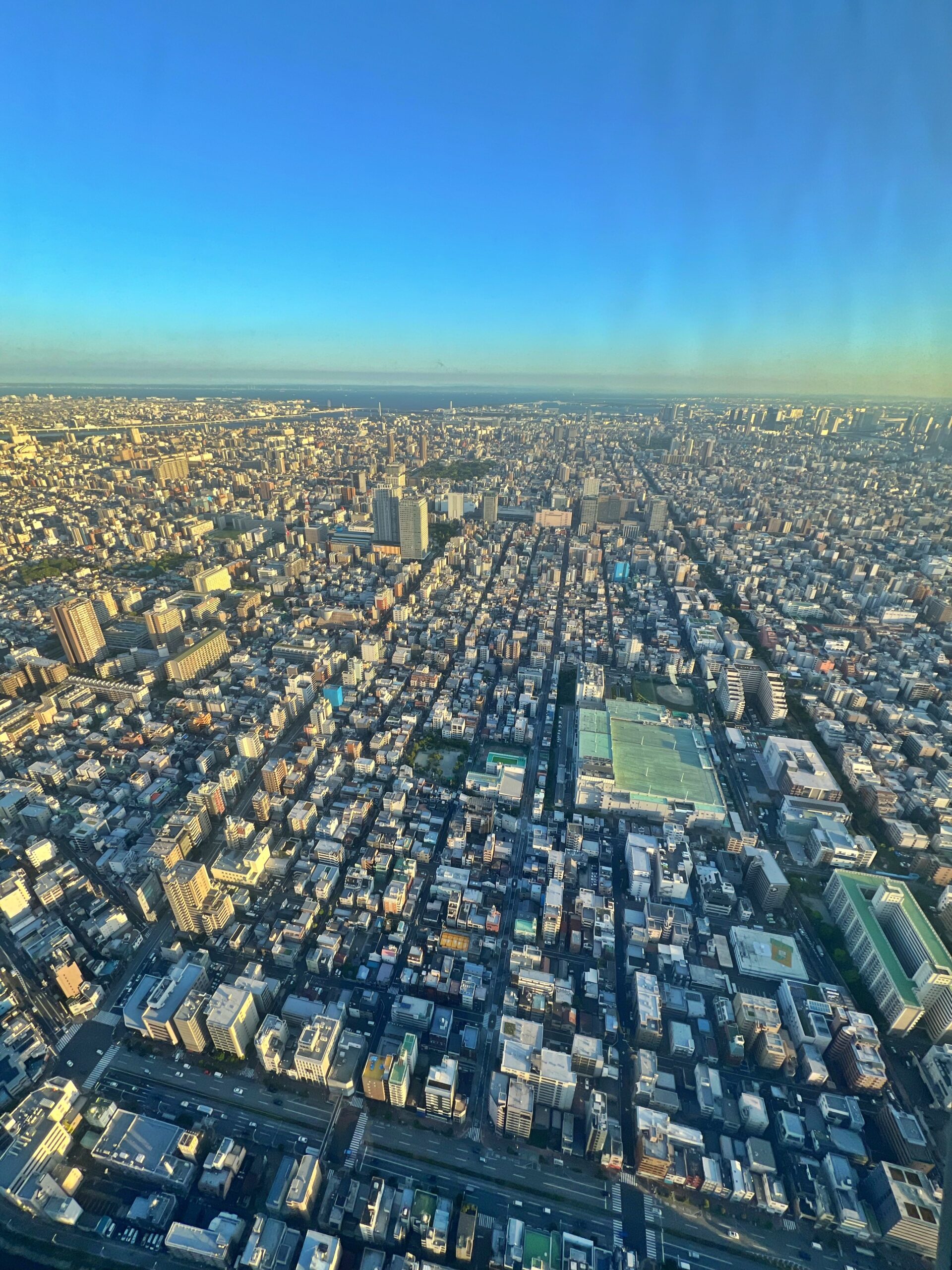 Oben angekommen, öffnet sich ein Panorama, das fast unwirklich wirkt. Tokio breitet sich endlos aus – ein Meer aus Lichtern, Linien und Leben. Bei klarer Sicht kann man sogar den Fuji am Horizont erkennen, und dieser Moment, wenn Stadt und Natur aufeinandertreffen, ist einfach magisch.