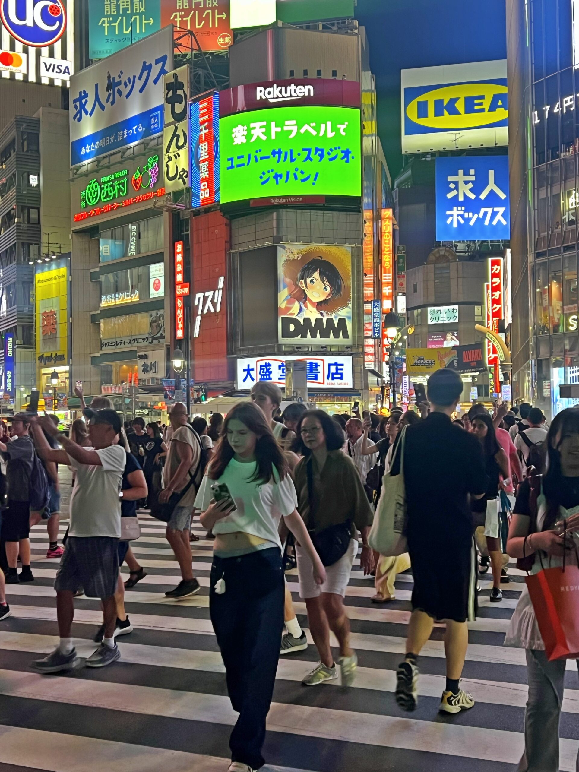 Wenn Tokio ein Gesicht hätte, dann wäre es Shinjuku bei Nacht. Hier wird die Stadt genau so, wie wir sie uns vor unserer Reise vorgestellt haben: ein endloses Flimmern aus Neonlicht, Reklamen, die in allen Farben leuchten, und Straßen, die selbst nach Mitternacht noch voller Leben sind.