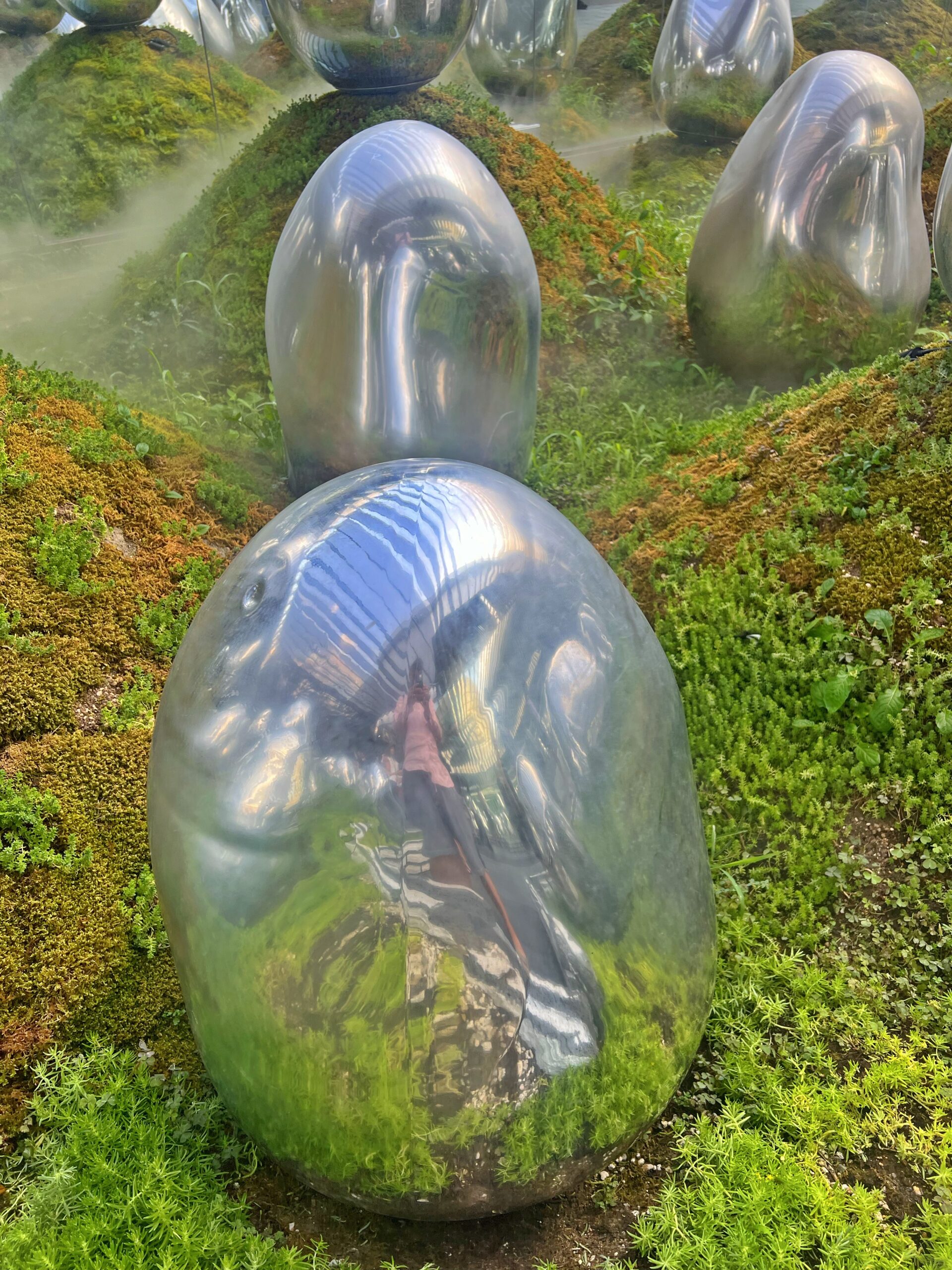 In einem Raum hängen unzählige spiegelnde Kugeln, die langsam ihre Farbe wechseln. Man verliert das Gefühl für Raum und Zeit, steht irgendwo zwischen Himmel und Spiegelung, mitten in einem Universum aus Licht.