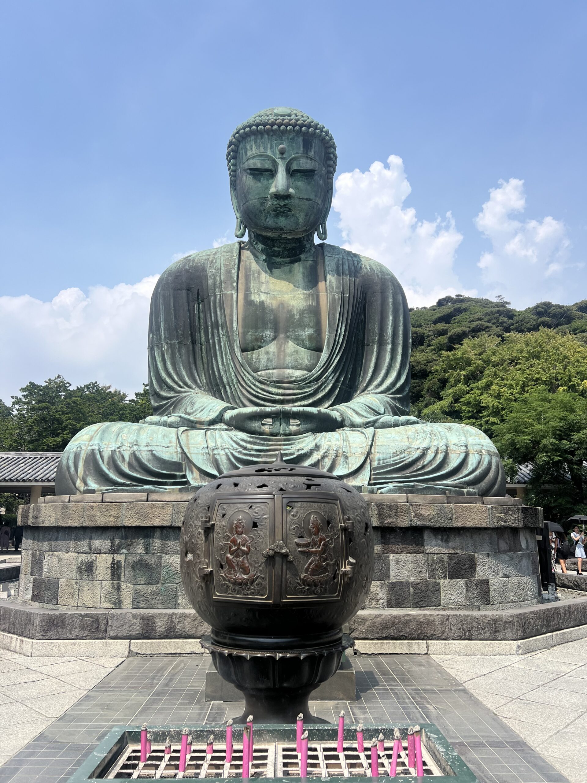Wenn man Kamakura besucht, führt kein Weg am Daibutsu vorbei – dem Großen Buddha. Majestätisch sitzt er unter freiem Himmel, umgeben von Bäumen und Bergen, als würde er seit Jahrhunderten über den Ort wachen. Die 13 Meter hohe Bronzestatue beeindruckt nicht nur durch ihre Größe, sondern durch die stille Würde, die sie ausstrahlt. Früher stand der Buddha in einem Tempelgebäude, doch ein Tsunami zerstörte es – der Buddha blieb. Vielleicht ist es gerade diese Standhaftigkeit, die ihn so faszinierend macht.