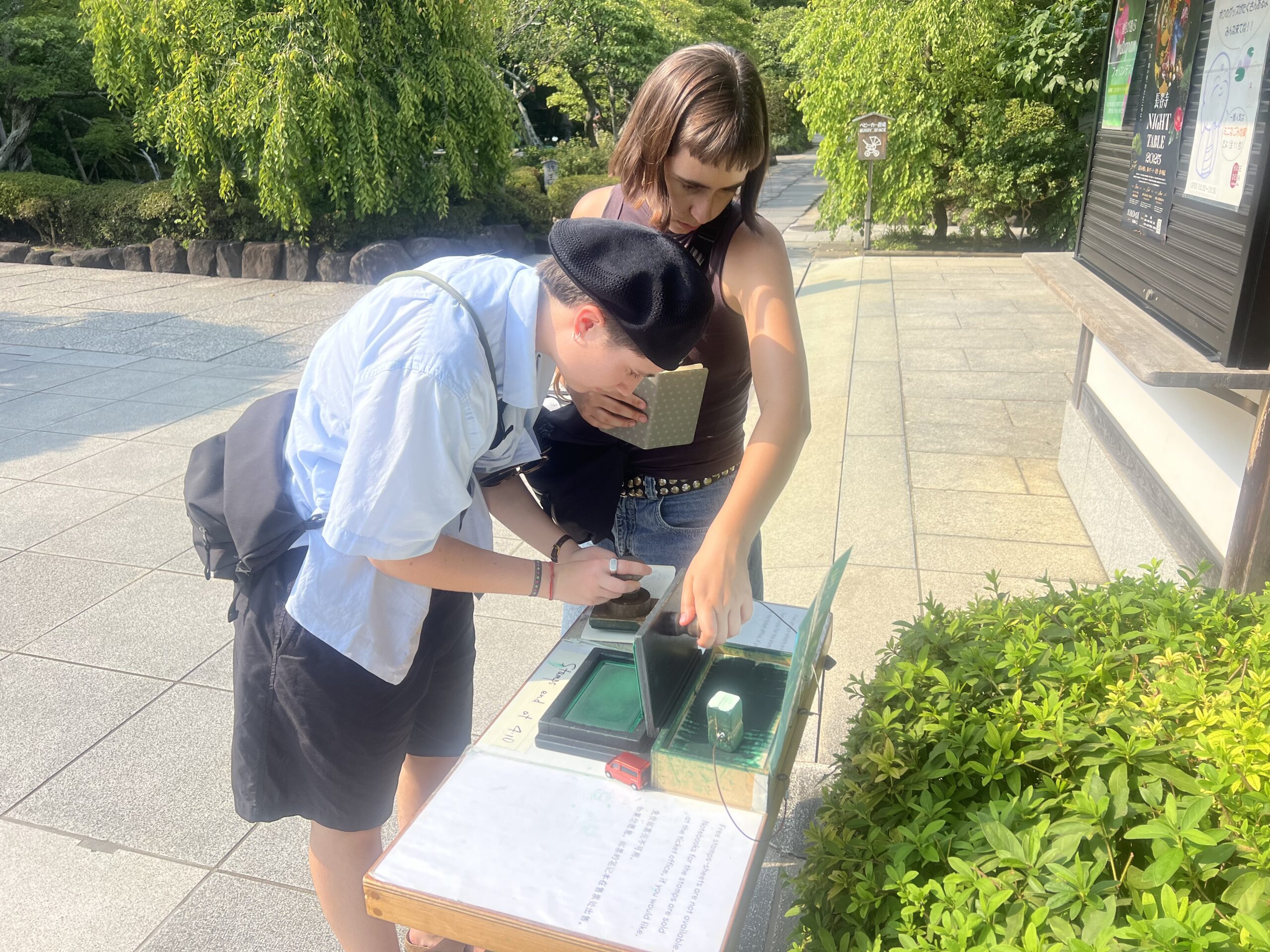 Stempelbüchlein: was JapanerInnen lieben, sind kleine Büchlein, in denen man von Orten, die man besucht hat, einen Stempel hineinbekommt. Wir haben bereits in Deutschland ein kleines Heftchen gekauft und haben die Stempel auch gesammelt. Ziemlich schnell haben wir daran Freude gefunden.